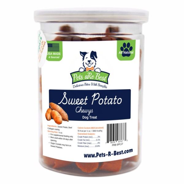 Each Sweet Potato Chewy is dehydrated for hours which creates an all natural texture loaded with its original rich, savory flavor. Our Sweet Potato Chewys are naturally packed with vitamins A, B-6, C and E for a healthy doggie snack. Naturally filled with beta-carotene, manganese and a great source of dietary fiber. These treats are perfect for any size dog.